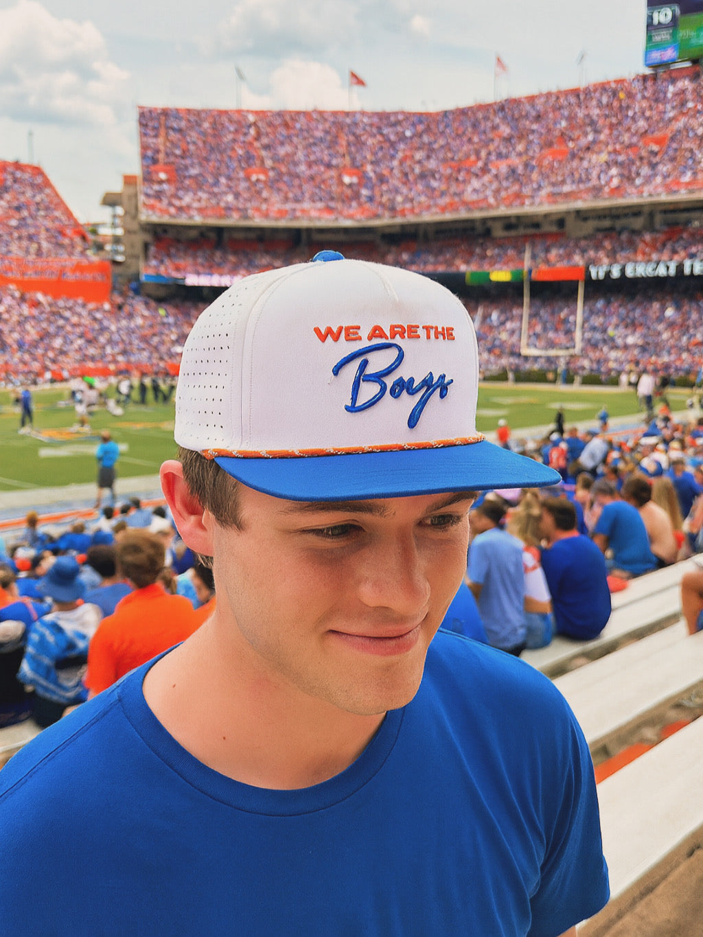 Get ready for game day in style with this white and blue laser-perforated Performance Snapback Rope Hat, designed for optimal comfort and breathability.